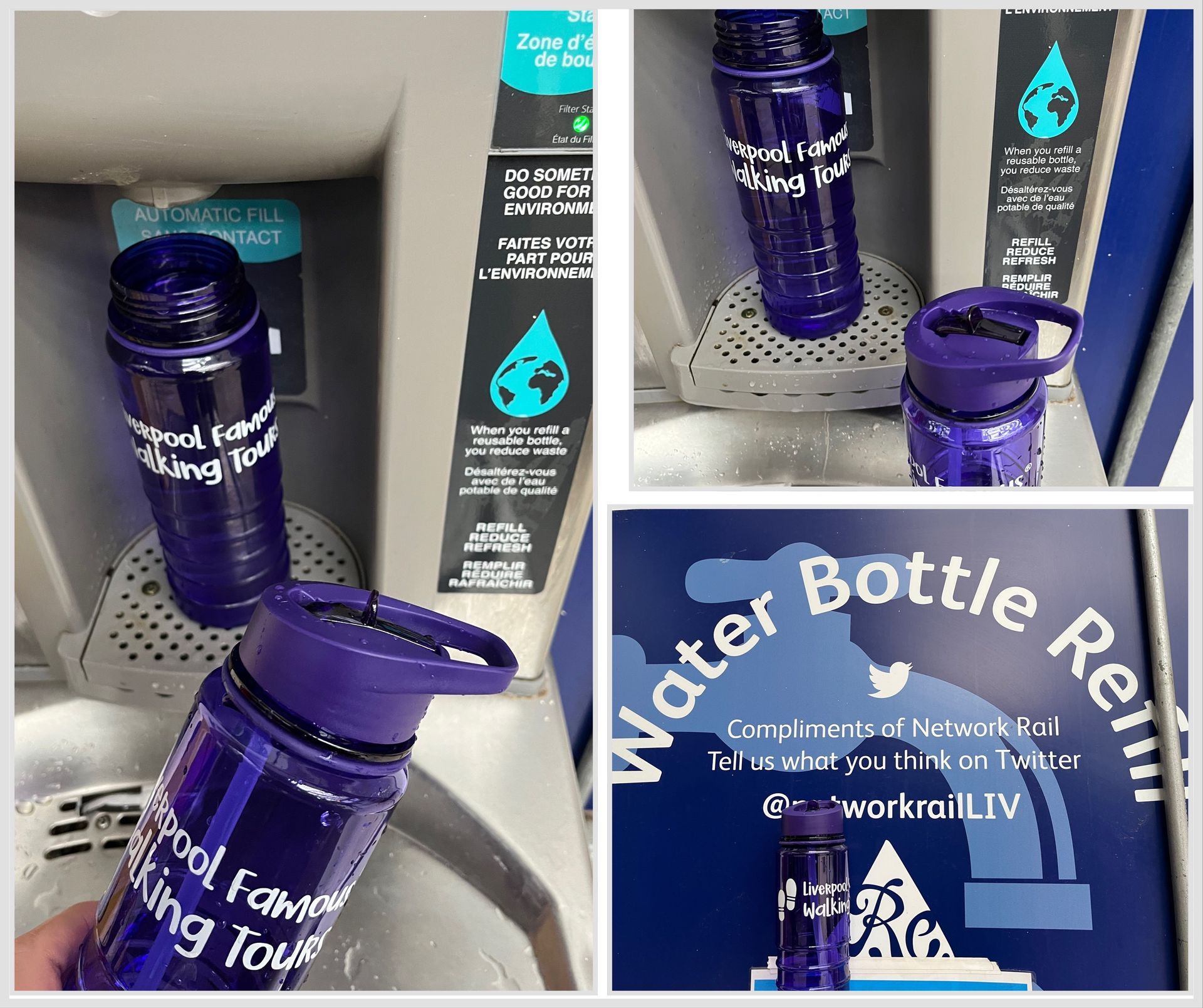 On our tours we encourage people to have a drink to hand (especially in warm weather) and are committed to doing all we can to reduce the amount of one-use plastic bottles that are used. To help with this we have provided out team with reusable water bottles and direct them to refill on route where facilities currently exist to do so, and we ask that our guests use reusable bottles where practical too..